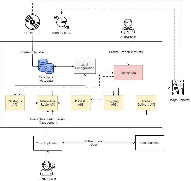 Each station you present within your Interactive Radio Service will be powered by tracks belonging to one or more playlists.